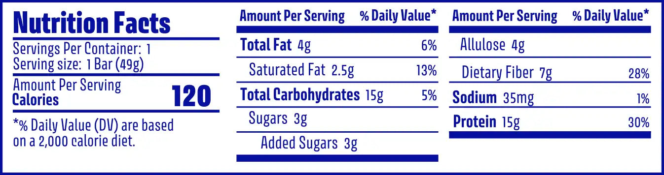 Blue Unicorn Protein Blend (canola protein, sunflower protein, pumpkin seed protein), water, dark chocolate (unsweetened chocolate, sugar, cocoa butter, sunflower lecithin, vanillin, vanilla), resistant dextrin, allulose, erythritol, partially hydrolyzed collagen, cocoa processed with alkalai, natural flavor, sprinkles (Sugar, Corn Starch, Maltodextrin, Lemon Juice, Natural Colour, Carnauba Wax), citric acid, salt.